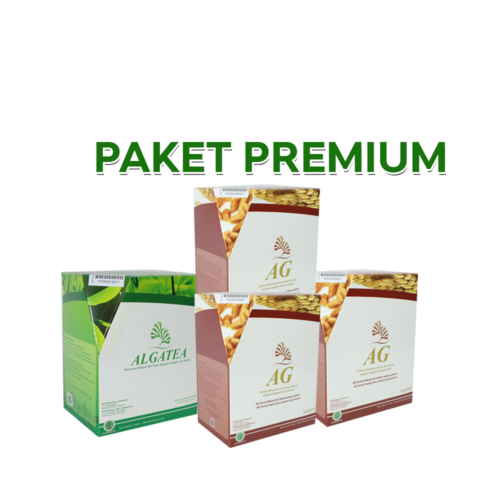 3 Box Alga Gold (3 x 20 saset @ 20 g) dan 1 Box Alga Tea (60 saset @ 2gr)