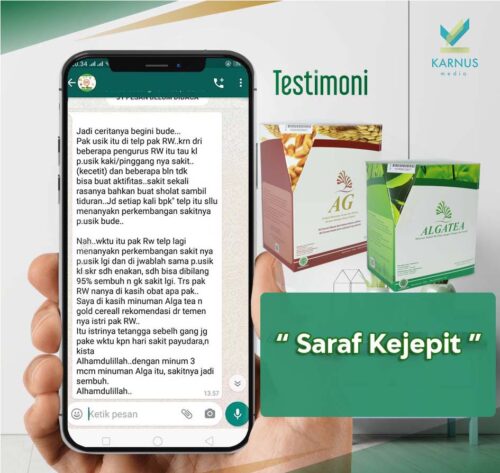 Saat ini saya dalam keadaan sehat wal afiat. Sebelumnya saya terkena penyakit cukup berat, yaitu maag sama GERD, sudah coba berobat ke mana-mana sampai ke Penang, dan saya pernah ketergantungan obat untuk maag dan GERD, hampir tiap minggu saya harus makan obat itu. Alhamdulillah setelah saya kenal dengan produk Alga Gold dan Alga Tea, setelah saya konsumsi lebih kurang 3 bulan, itu banyak terjadi perubahan, dan GERD saya dan maag saya sudah mulai berkurang.