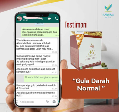 Alhamdulillah dari gula 525 dengan mata buram untuk melihat, itu sekarang saya sudah bisa normal kembali. Setelah saya divonis dokter 1nsulin seumur hidup, saya konsumsi Alga Gold Alga Tea 3 bulan, saya sudah tidak 1nsulin lagi karena gula darah saya sudah normal. Jadi vonis dokter seumur hidup 1nsulin itu tidak berlaku untuk prinsip Karnus. 3 bulan diabetes saya sembuh, 11 bulan konsumsi kanker saya bersih. Ya Alhamdulillah dengan adanya Alga Gold Alga Tea Insya Allah saya sehat seterusnya..